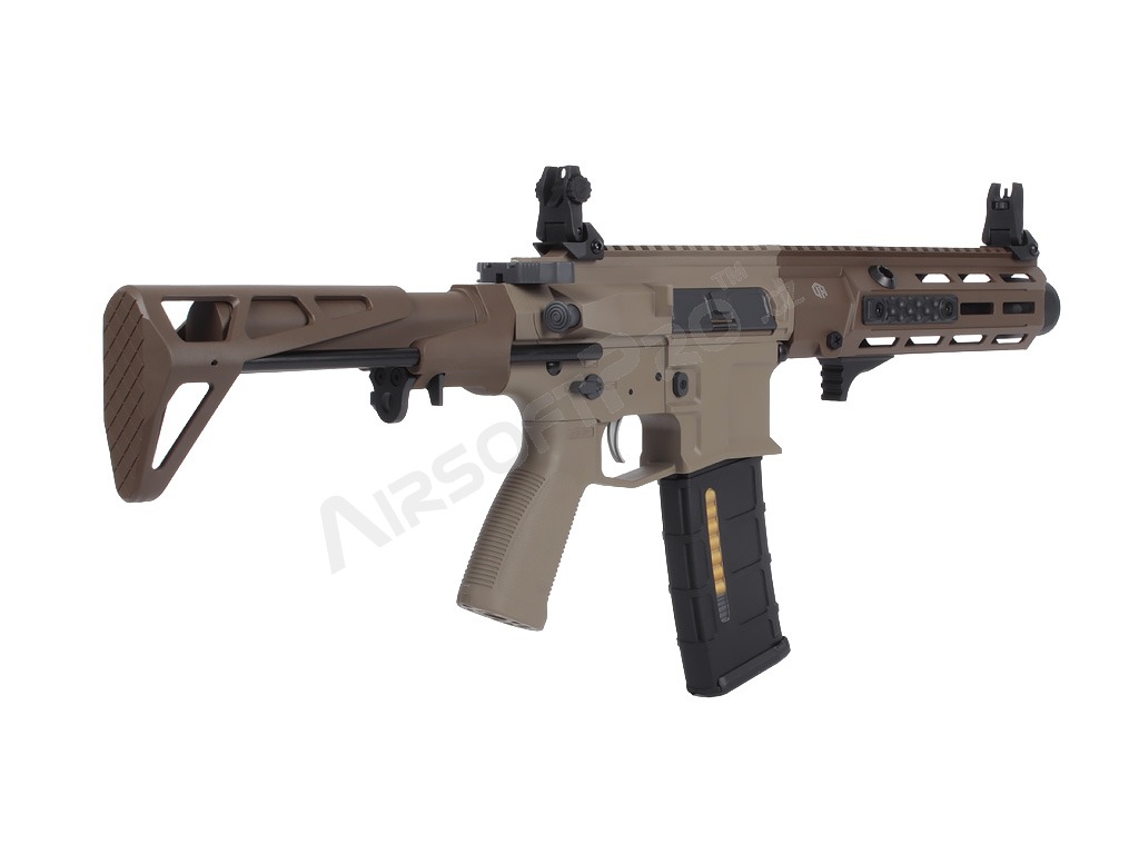 A könnyű polimer test fém alkatrészekkel kellemesen alacsonyan tartja az összsúlyt - mindössze 2,26 kg -, miközben elég tartós a harci airsoft bevetésekhez. A könnyű, behúzható szár 622-735 mm között állítható a hossza (4 pozícióban), az összecsukható célzókészülék lehetővé teszi a kollimátor egyszerű használatát, az M-LOK alkar pedig helyet ad a moduláris rögzítésnek. Az kétkezes elsütőkapcsoló, a modern zárszerkezetű kakasfelhúzó kar és a funkcionális zármegállító kényelmes kezelhetőséget biztosít. Az alumíniumból készült hatékony hangerősítő erőteljes akusztikai hatást kölcsönöz lövéskor.