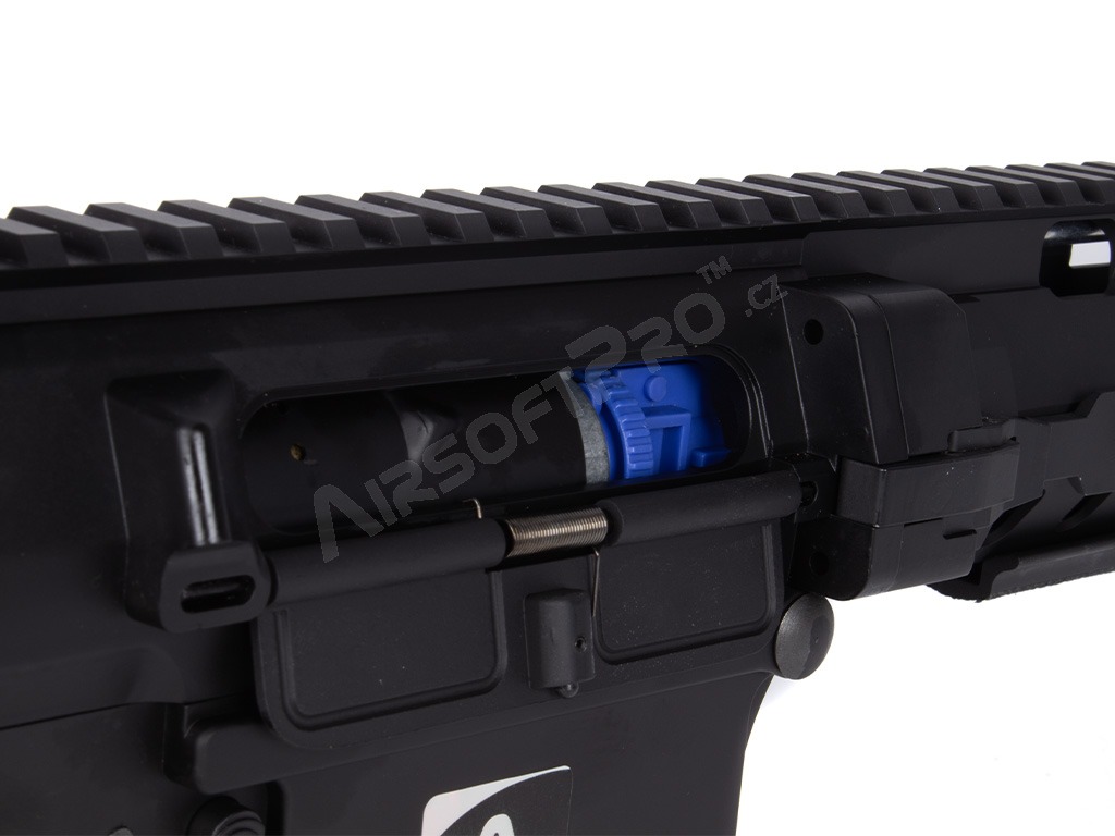 Az ambidextrikus kakasfelhúzó kar meghúzásával a hop-up kamra (ProWin stílus) forgó gyűrűjéhez férhet hozzá. Az imitált zárszerkezet reteszelve van, így a kamra beállítása nagyon kényelmes. A tolózár kioldó funkcionális, és az éles modellhez hasonlóan a test bal oldalán található. Ezen az oldalon található a klasszikus tüzelési mód kapcsolója is. A tárkioldó egyoldali, a test jobb oldalán található. A fegyver típusa és az egyedi sorozatszám az íjon van bélyegezve.