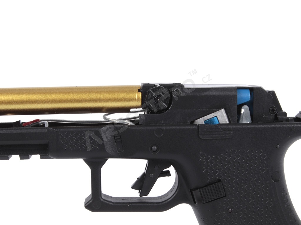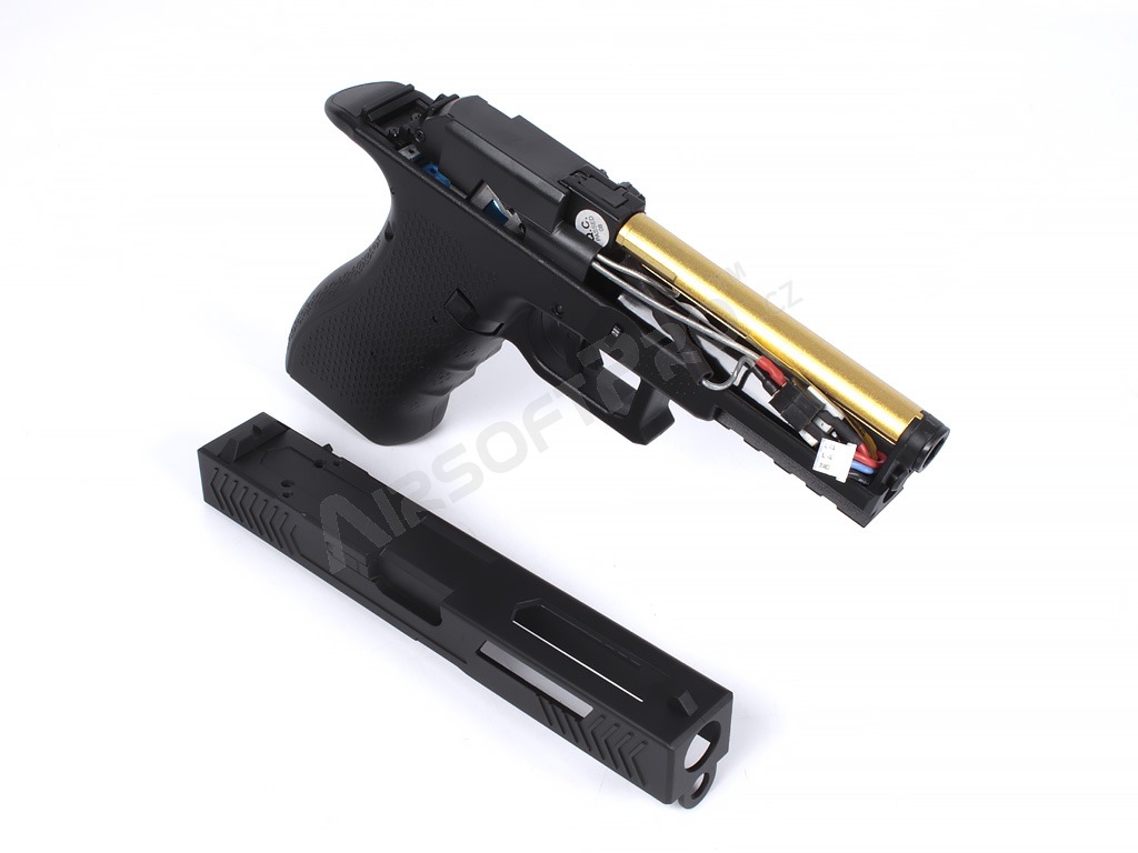 Egy kis Li-Po akkumulátor található a csúszka alatt, amely a belső mechanizmust táplálja. Ezáltal a pisztoly kompakt és kiegyensúlyozott testet kap; a tár kifejezetten keskeny, így minden kényelmesen elfér a pisztoly vázában. A műanyag alkatrészek tartós polimerek, a legfontosabb belső alkatrészek pedig fémek.
