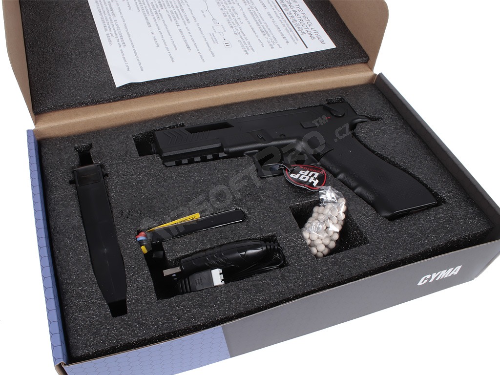 A CYMA CM.131S AEP Mosfet Edition egy elektromos pisztoly (AEP), amely nagyszerű alternatívája a kézi és gázpisztolyoknak. Egyesíti az elektromos meghajtás könnyű kezelhetőségét és megbízhatóságát a kötegelt tüzelés képességével - ideális kiképzéshez és gyors bevetéshez, ugyanakkor független a külső hőmérséklettől.