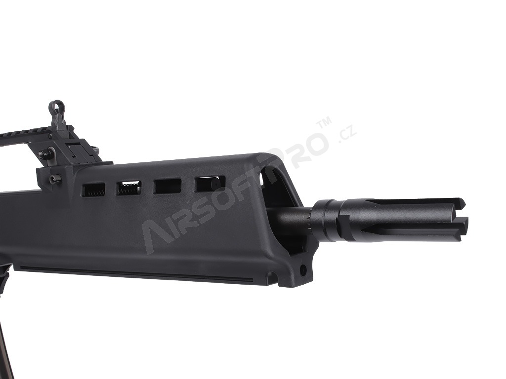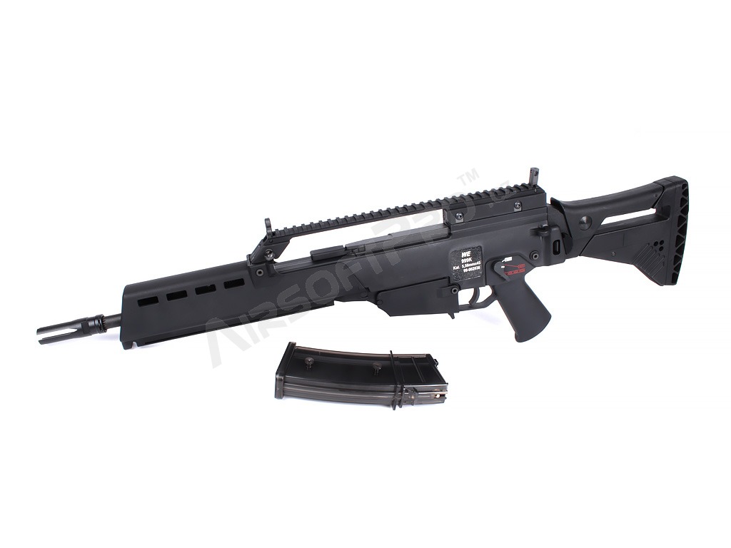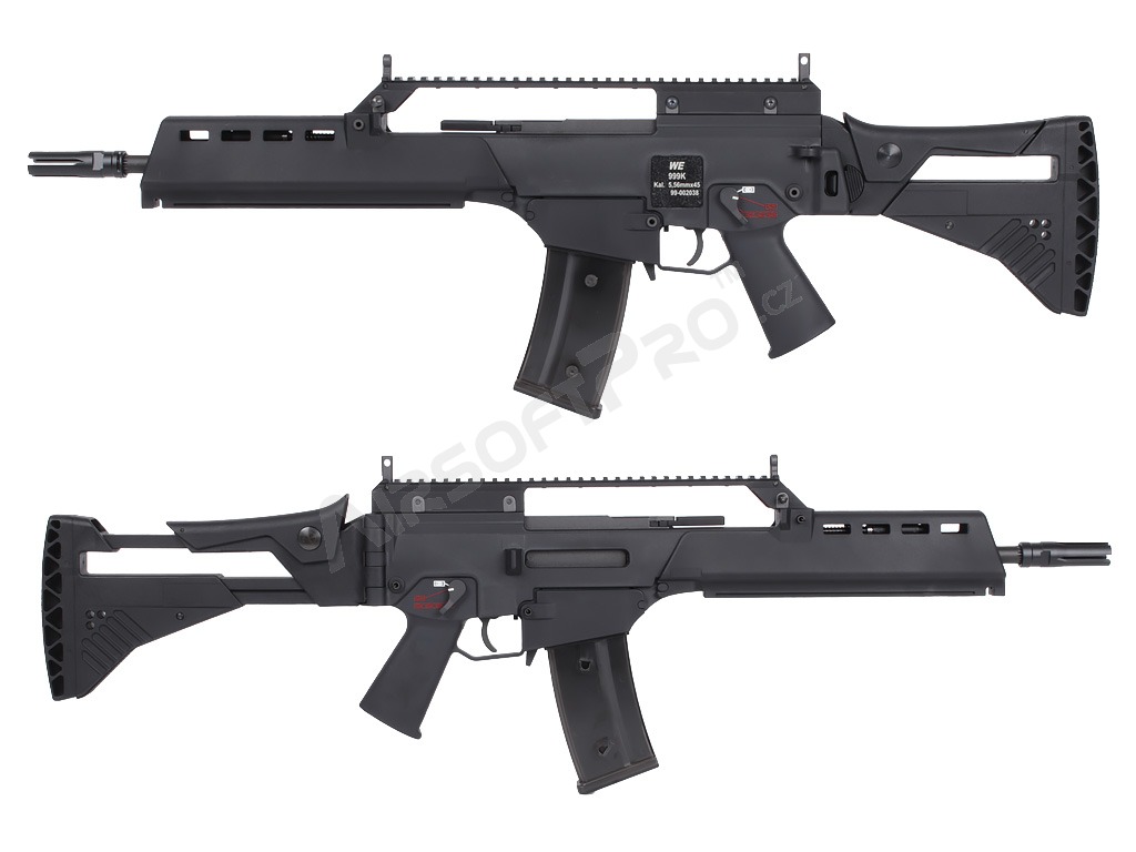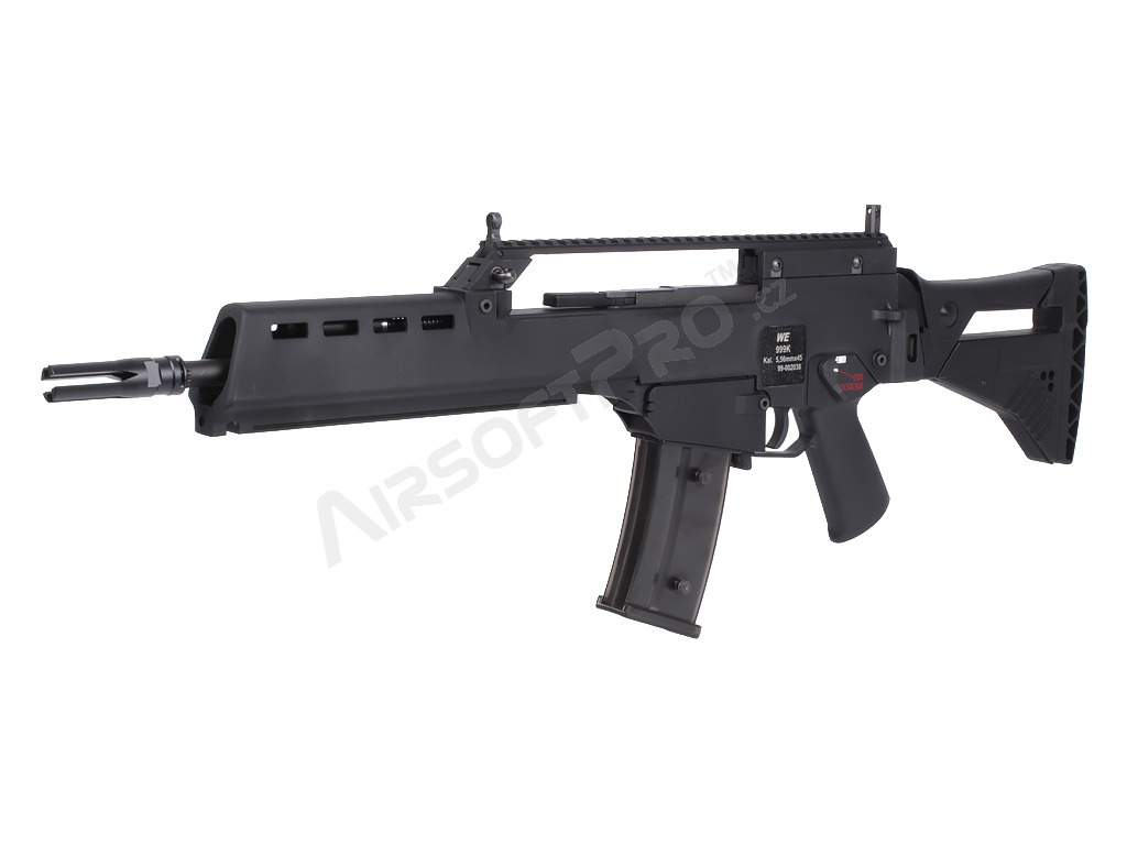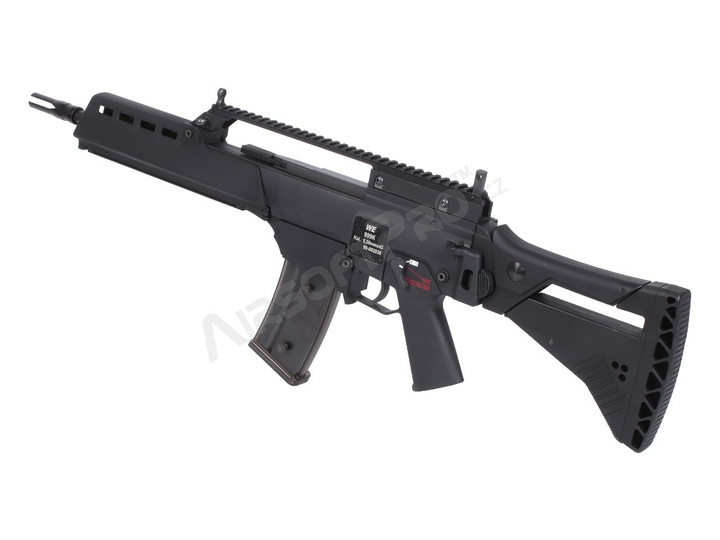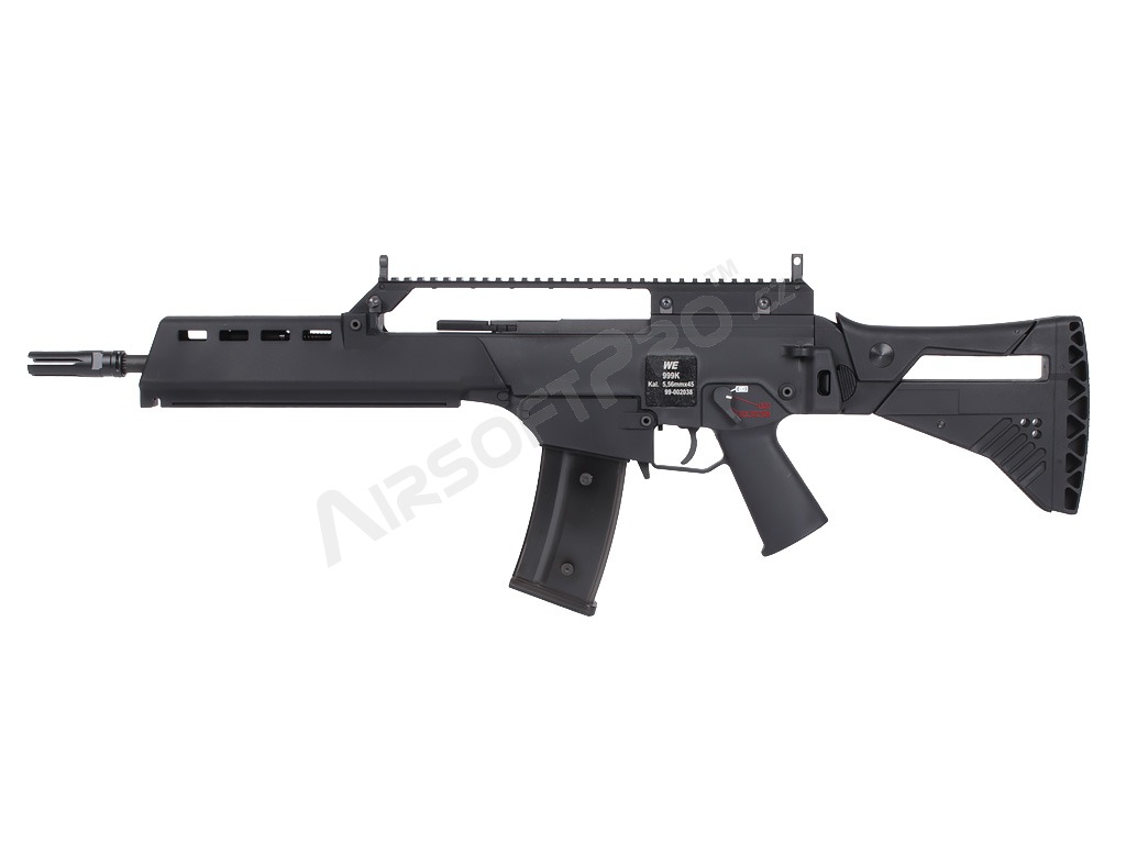 AWE G39K (GBB ) egy rendkívül élethű, 1:1 méretarányú gázfegyveres blowback replika a tajvani WE márkától. A tartós ABS műanyagból készült robusztus test a könnyű súlyt (3 kg) a mechanikai tartóssággal ötvözi, míg a legfontosabb belső alkatrészek - a csúszka, a ravaszmechanizmus és más mozgó alkatrészek - fémből készültek, ami garantálja a pontos működést és a hosszú élettartamot. A "K" jelölés a Carbine-t jelenti - a G36 (G39) családon belüli középhosszúságú fegyver.
