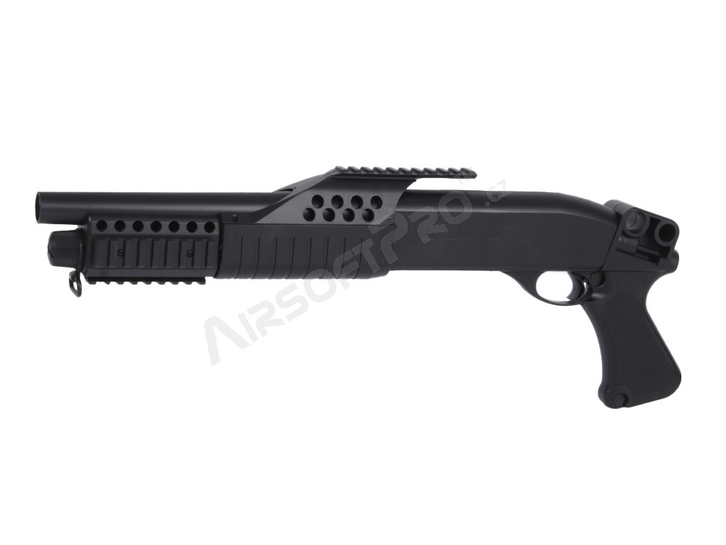 Az M180-A1 CQB airsoft puska egy könnyű, könnyen kezelhető pumpás puska, amely kezdőknek és szabadidős lövészetre alkalmas. A teljesen műanyag szerkezet pisztolymarkolattal kényelmes fogást és könnyű súlyt biztosít, a pisztoly egy ravasz meghúzásonként egy lövedéket lő ki.