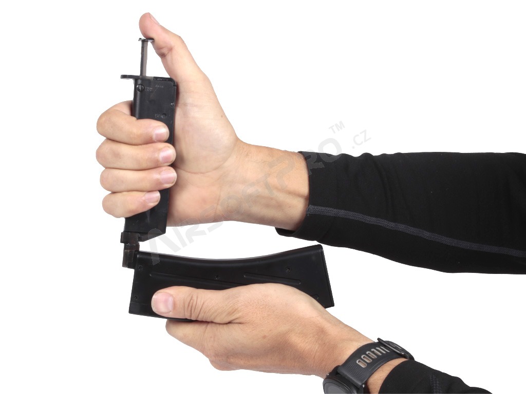 Az M1 katonai karabély stílusos, 1:1 méretarányú kézi másolata - tökéletes választás reenactorok, gyűjtők és játékosok számára, akik valami másra vágynak, elem és gáz nélkül. A fát utánzó kivitelű szár szép klasszikus megjelenést kölcsönöz; a test könnyű műanyagból készült, így a fegyver könnyen kezelhető és alacsony karbantartási igényű.