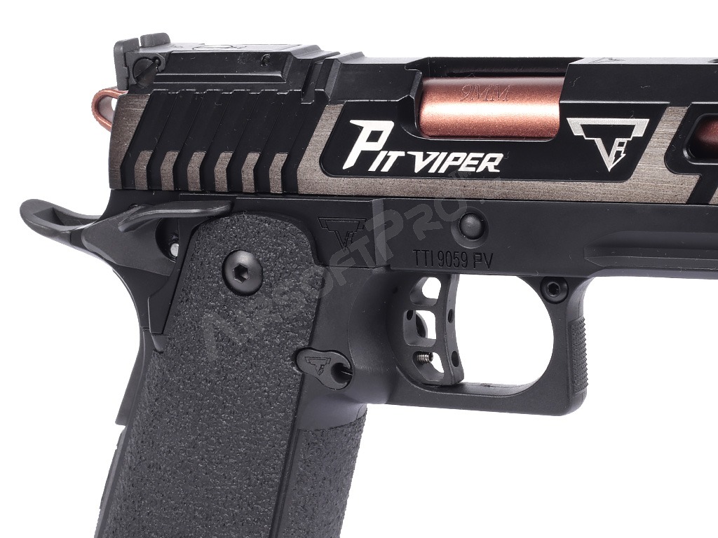 A pisztoly masszív vázra épül, alumínium zárszerkezettel, amely biztosítja a pisztoly számára a szükséges tartósságot és a reális 1050 g-os súlyt. A csúszka és a váz hiteles lézeres jelölésekkel és a Taran Tactical Innovations logó és a Pit Viper jelölések mély gravírozásával rendelkezik.