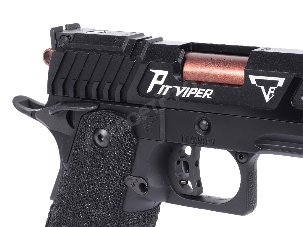 A pisztolyt a nagy szilárdságú 7075-ös alumíniumból CNC-technológiával készült, precíziósan maratott zárszerkezet uralja. A magasfényű fény ezés (oxidációs felület) fényűző megjelenést kölcsönöz a pisztolynak, és növeli a kopásállóságot. A csúszka és a váz hiteles lézeres jelölésekkel és a Taran Tactical Innovations logó és a Pit Viper jelölések mély gravírozásával rendelkezik.