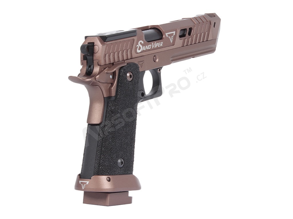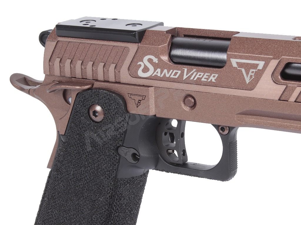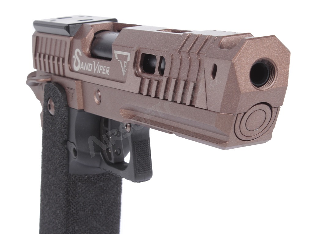 A pisztoly masszív vázra épül, alumínium zárszerkezettel, amely biztosítja a pisztoly számára a szükséges tartósságot és a reális 1050 g-os súlyt. A csúszka és a váz hiteles lézeres jelölésekkel és a Taran Tactical Innovations logó és a Sand Viper jelölések mély gravírozásával rendelkezik.