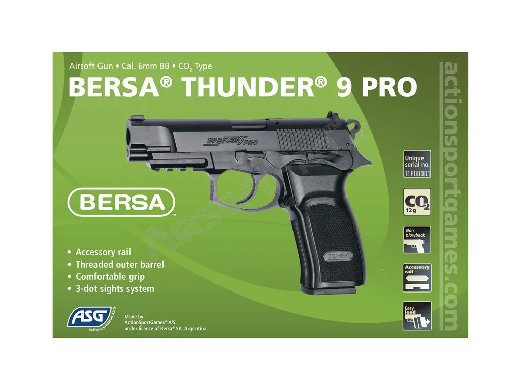 A BERSA Thunder® Pro egy félautomata 6 mm-es airsoft változat, amelyet a BERSA teljes mértékben engedélyezett. A pisztoly markolatában tárolt 12 grammos CO2-bombával működik. A lövedékek egy kivehető tárba töltődnek.