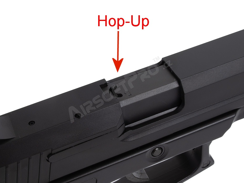 A csúszka kézzel is felhúzható, mint az igazi modellnél, de a lövéshez ez nem szükséges. Egyszerűen csak helyezzen be egy léggömbökkel és egy CO2-bombával teli tárat a fegyverbe, és húzza meg a ravaszt. Nem kell aggódnia semmi miatt. Csak a belső alkatrészek és az ütőszeg mozognak tüzeléskor. Nincs mozgása a csúszdának - BlowBack. Így alacsonyabb a gázfogyasztása és csendesebb.