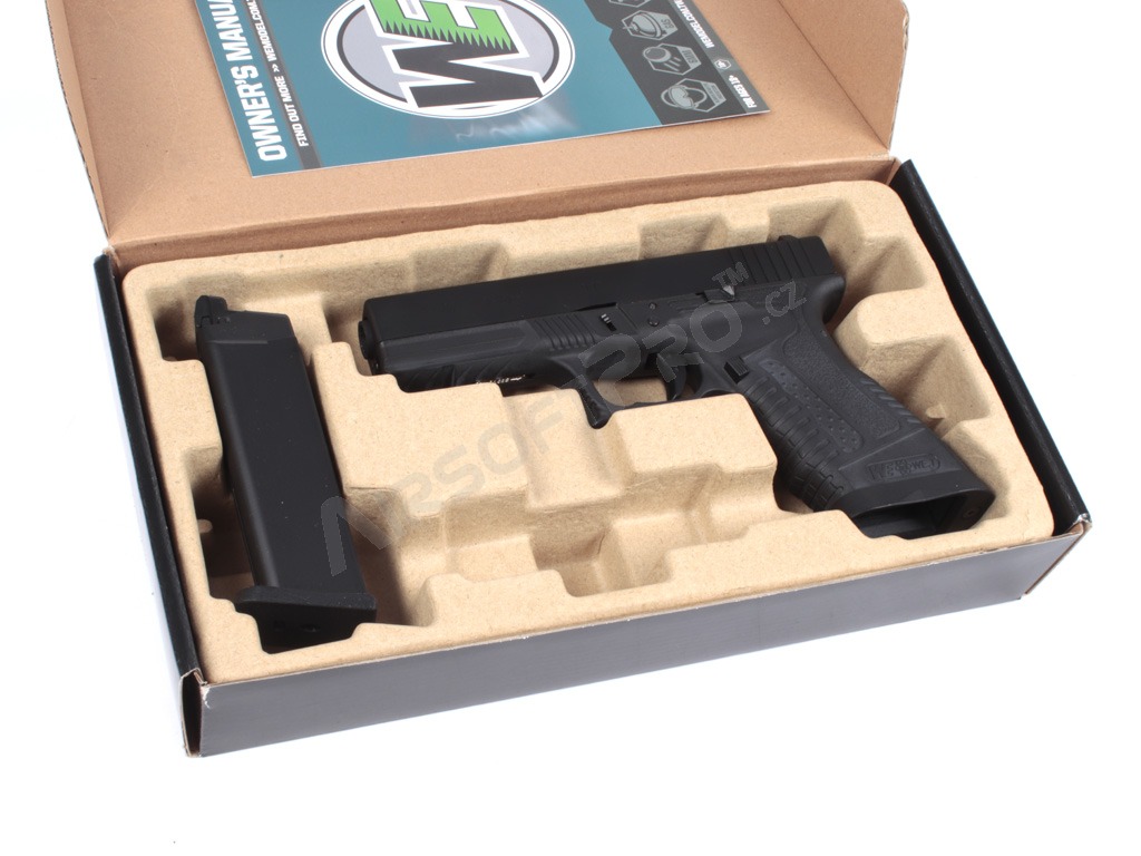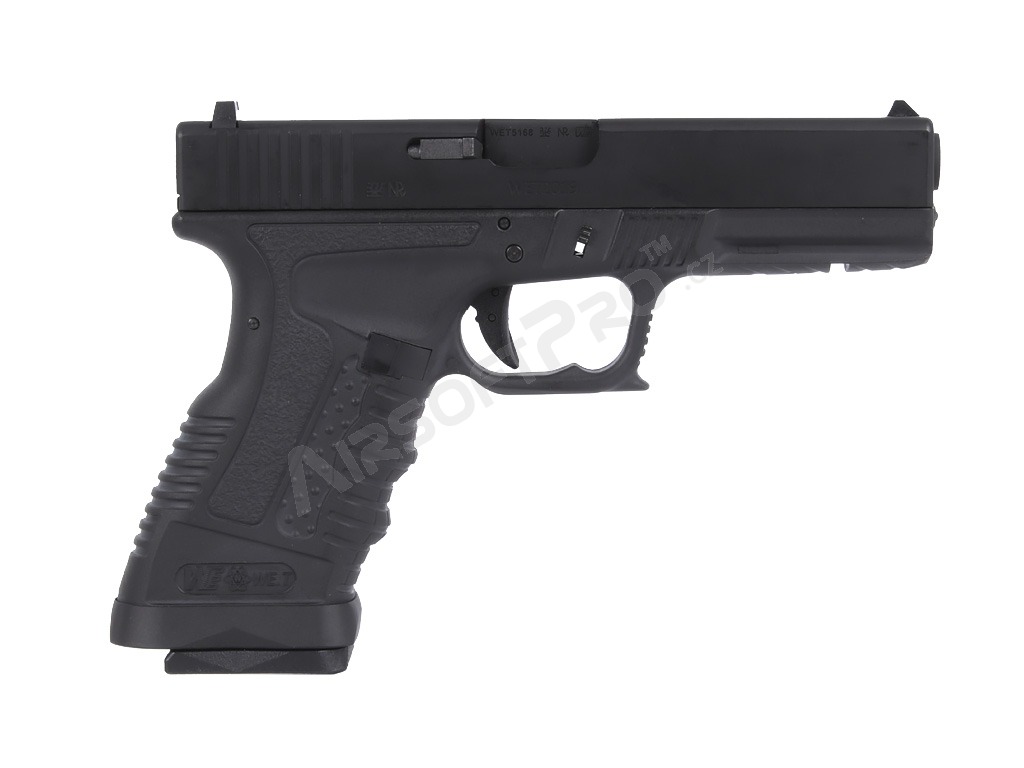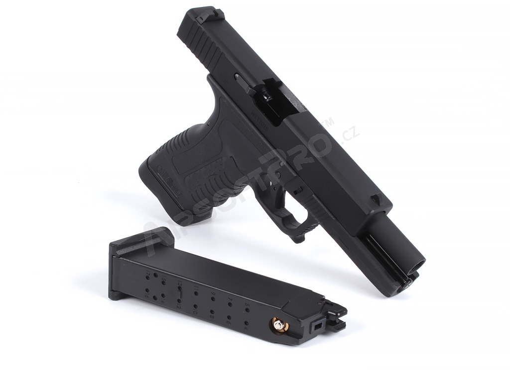Airsoft pisztoly GP1799A - GBB, fekete fém csúszka, fekete keret [WE]
