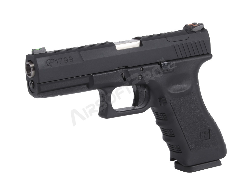 Airsoft pisztoly GP1799A - GBB, ezüst fém csúszka, fekete keret [WE] Airsoft pisztoly GP1799A - GBB, ezüst fém csúszka, fekete keret