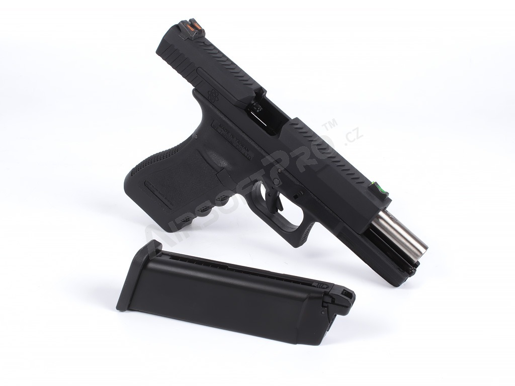 Gázpisztoly fém zárszerkezettel és polimer vázzal. Ezeknek a tulajdonságoknak köszönhetően nagyon kompakt. A pisztoly funkcionális visszacsapással rendelkezik, ami nagyon valósághűvé teszi a lövést. A szétszerelés magától értetődő - a replika az igazi fegyverhez hasonlóan szétszerelhető.