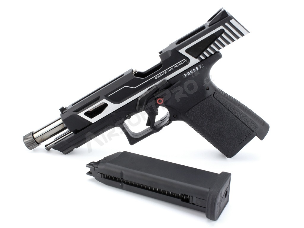 Airsoft pisztoly GTP9 MS, gázzal visszacsapó (GBB) CNC csúszka - ezüst