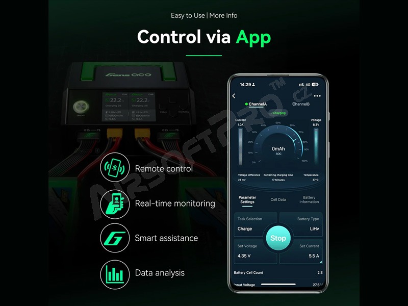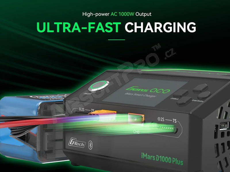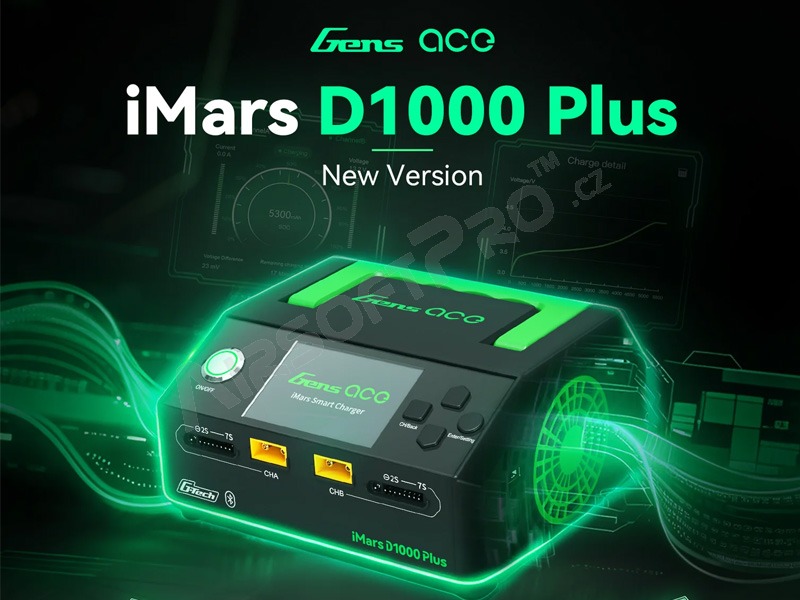 A Gens Ace iMars D1000 Plus egy modern kétcsatornás intelligens töltő, amely a jól bevált D1000-es modellen alapul. Megtartja a G-Tech rendszer legfontosabb jellemzőit, és most már a Bluetooth-on keresztüli távvezérlés lehetőségével is kiegészül. A felhasználók mostantól a Gens Ace alkalmazással kezelhetik a valós idejű adatokat és megtekinthetik a korábbi adatokat, így a töltés egyszerűbbé, hatékonyabbá és biztonságosabbá válik.