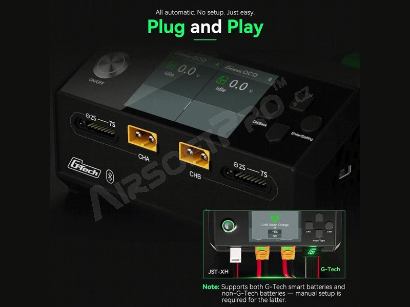 - G-Tech rendszer: A G-Tech intelligens akkumulátorok automatikus felismerése - csak csatlakoztassa és töltse fel bonyolult beállítások nélkül.