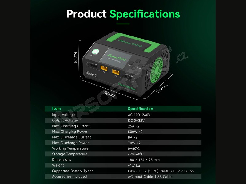 iMars G-Tech D1000 G-Tech 2x500W-os akkumulátortöltő LiPo, LiIon, LiHV, LiFe, NiMH akkumulátorokhoz [Gens ace]