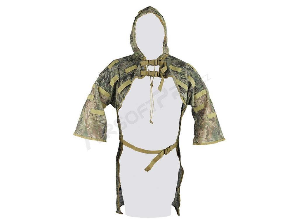 A takaróhoz egy levehető kapucni tartozik, amely segít megtörni a fej sziluettjét és növeli az álcázás általános szintjét. A mellény két mellkaspánttal és egy derékpánttal rendelkezik, amelyek mindegyike csattal van ellátva a könnyű levételhez, lehetővé téve a gyors fel- és levételt a játék szükségtelen késleltetése nélkül.