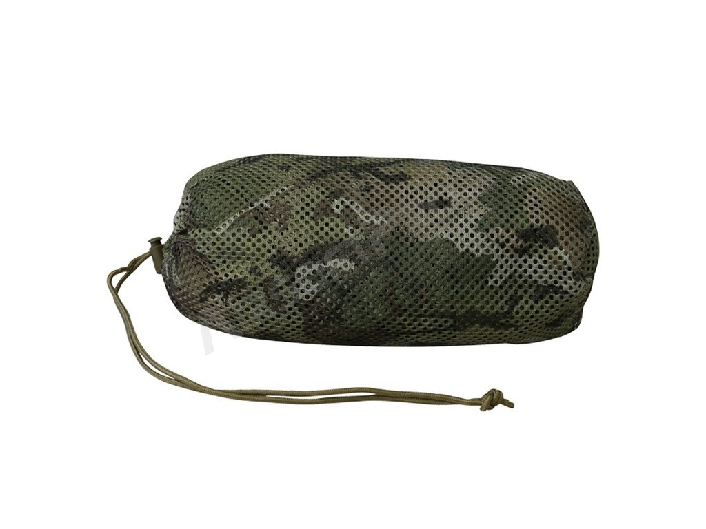 A könnyű és légáteresztő kialakítás még hosszú ideig tartó viselés esetén is kényelmet biztosít, míg a stratégiailag elhelyezett vastag, kojotszínű gumiszalagok lehetővé teszik a természetes és szintetikus álcázóanyagok egyszerű rögzítését az aktuális környezettől függően.