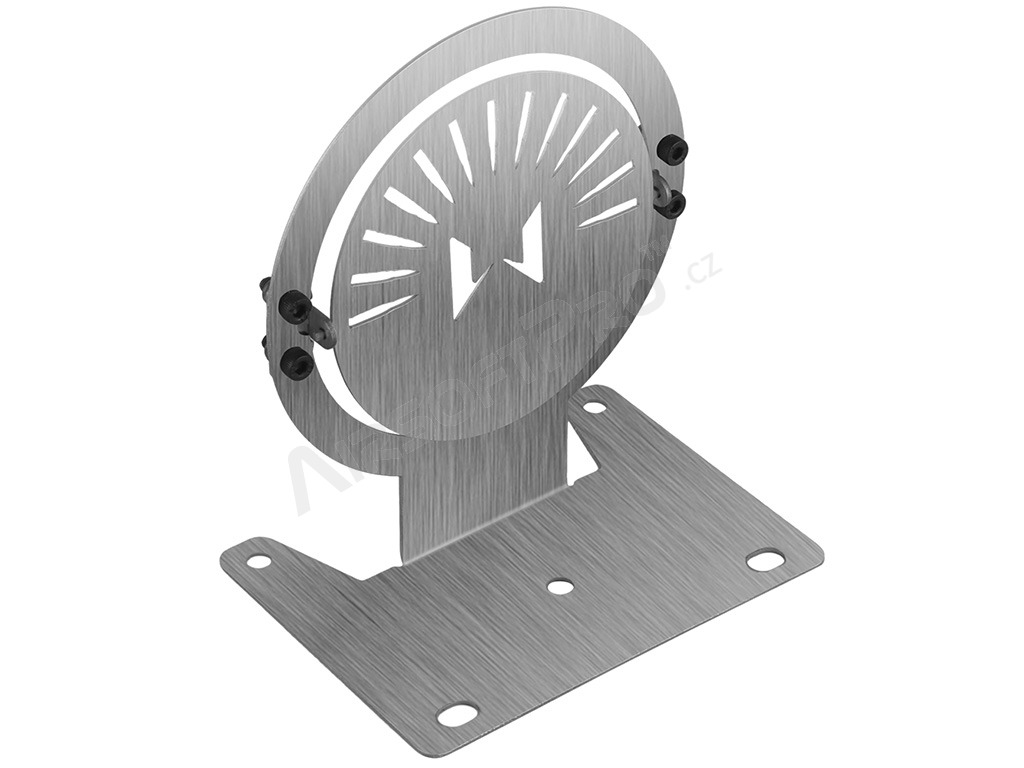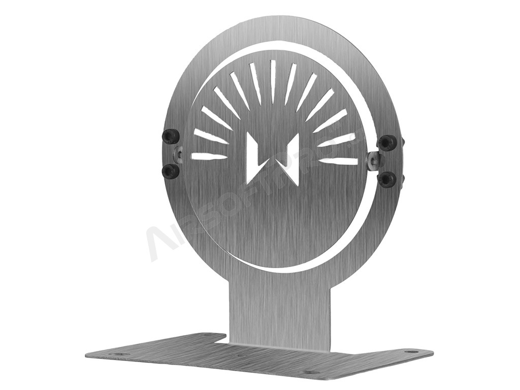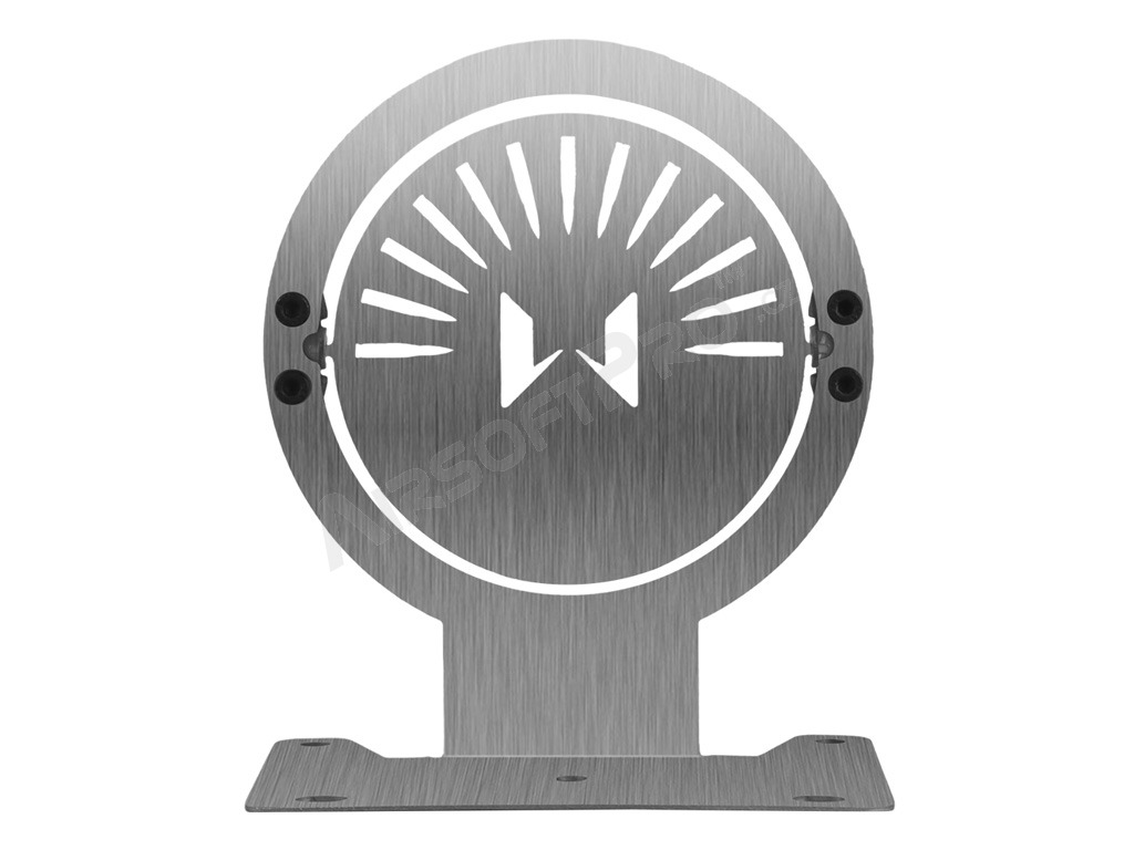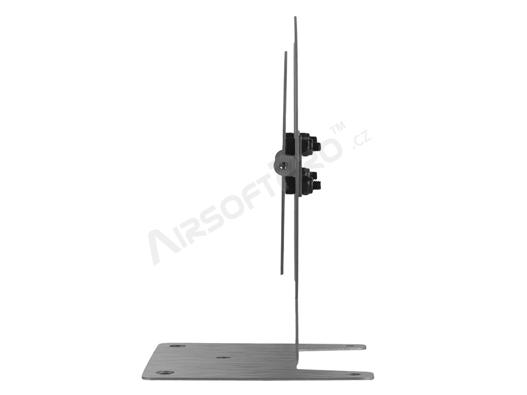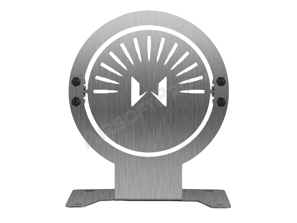 A céltábla és az alap egy darab lézerrel vágott 1,2 mm-es acéllemezből készült, csiszolt felületű. A céltábla megmunkált élekkel rendelkezik a biztonságos kezelés érdekében.