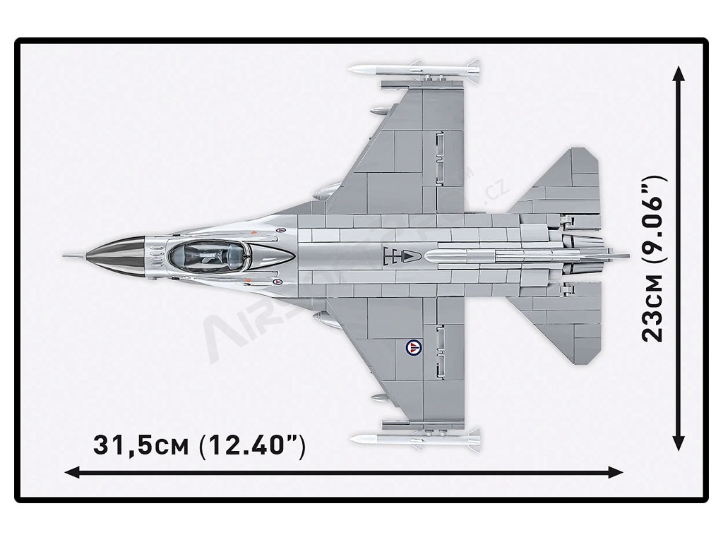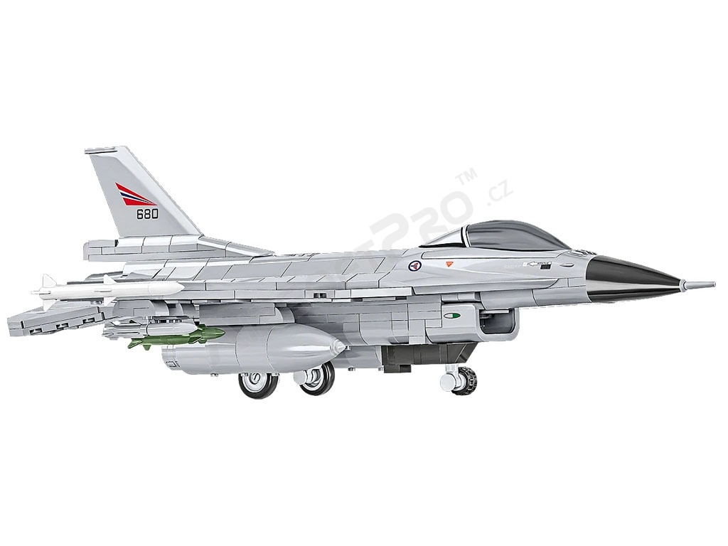 - A norvég F-16-os modell hűen adja vissza az eredeti formáját, arányait és jellegzetes vonásait.