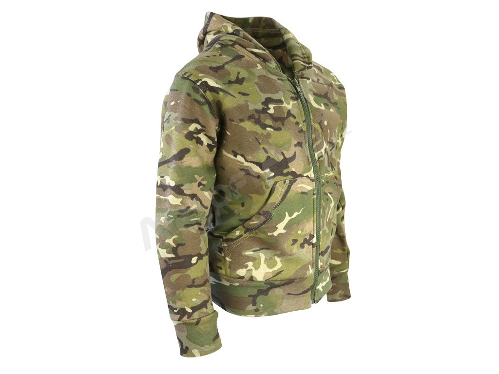 Gyermek fleece kapucnis kapucnival BTP (British Terrain Pattern - hasonló a Multicam mintához) terepszínű mintával, amely a puha fleece bélésnek köszönhetően nagyon meleg és kényelmes egész napos viselet.