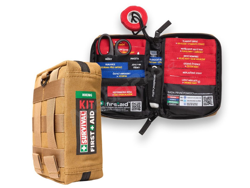 A Hiking Kit egy kompakt és professzionálisan összeállított elsősegélycsomag, amelyet túrázáshoz, szabadtéri és civilizációtól távoli utazásokhoz terveztek. A mindössze 512 g-os súlyának köszönhetően könnyen elfér a hátizsákban, és a MOLLE kompatibilis rendszernek köszönhetően övre vagy felszerelésre is rögzíthető.
