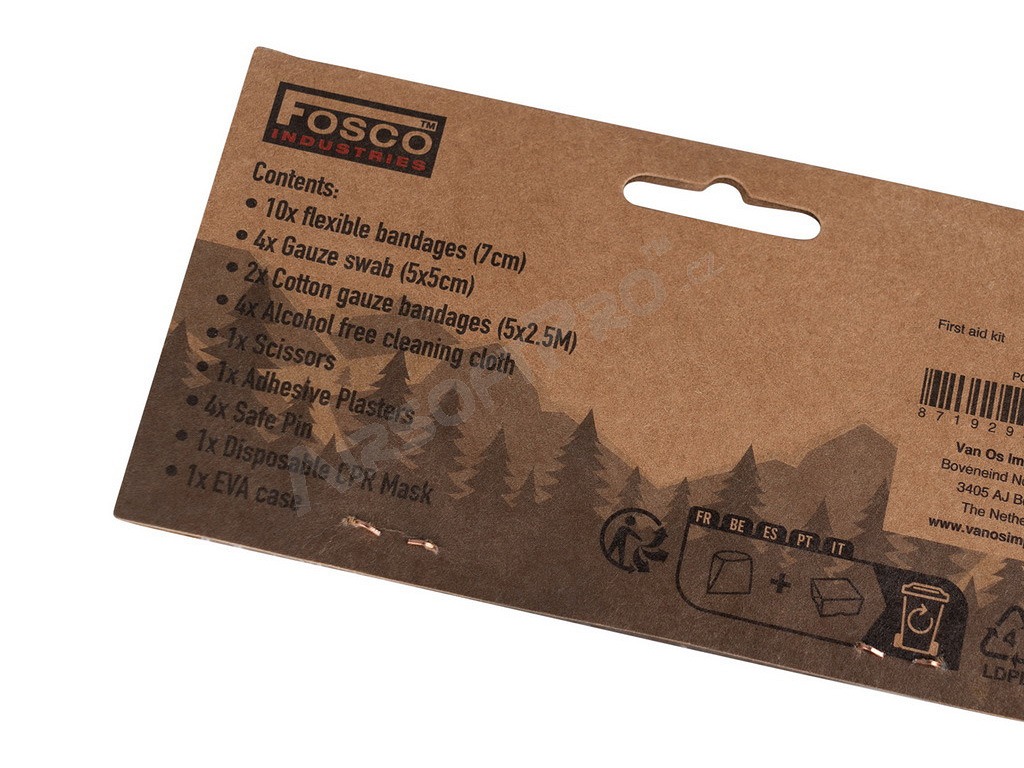 A FOSCO kis elsősegélycsomagja az alapvető elsősegélynyújtáshoz és az emberi élet megmentéséhez szükséges fontos felszerelésekkel van ellátva.