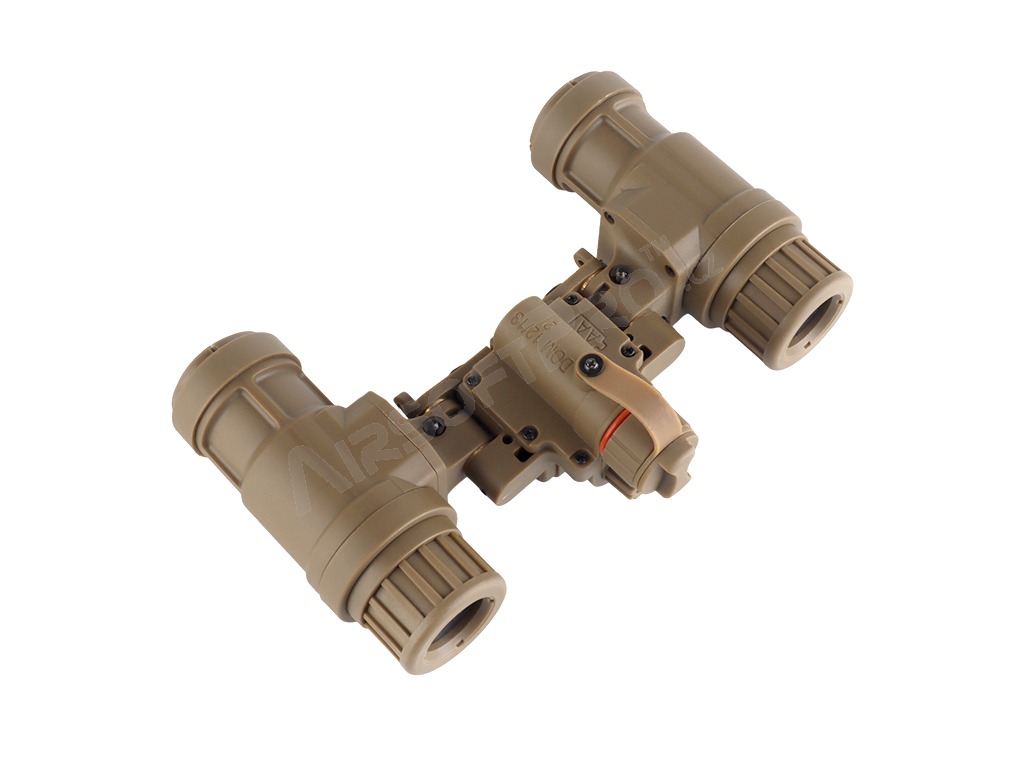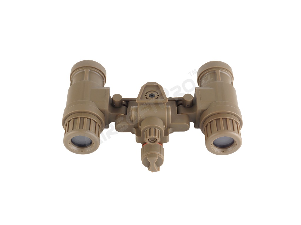 A modell tartós polimerből készült, amely jó szilárdságot kínál, miközben könnyű súlyt tart fenn. A kialakítás a katonai készletekben használt valódi binokuláris NVG-ket utánozza, és hozzájárul a hiteles taktikai megjelenéshez, felesleges súly nélkül.