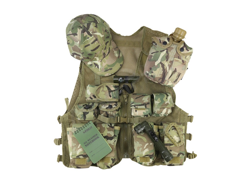 Gyermek kalandmellény szett BTP (British Terrain Pattern - hasonló a Multicam mintához) terepszínű mintával.