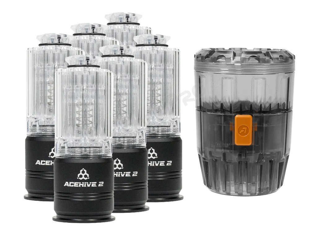 Az AceHive gránátok előnye a Spawner gránátkitöltővel kombinálva a gránát szinte azonnali - egy másodpercen belüli - feltöltése. Egyszerűen töltse meg a Greengas gránátot gázzal, tegye a pelleteket a töltőbe, helyezze a gránátra, és fordítsa el a töltőt a gránát rögzítéséhez - ennyi. Rendkívül gyors, rendkívül egyszerű.