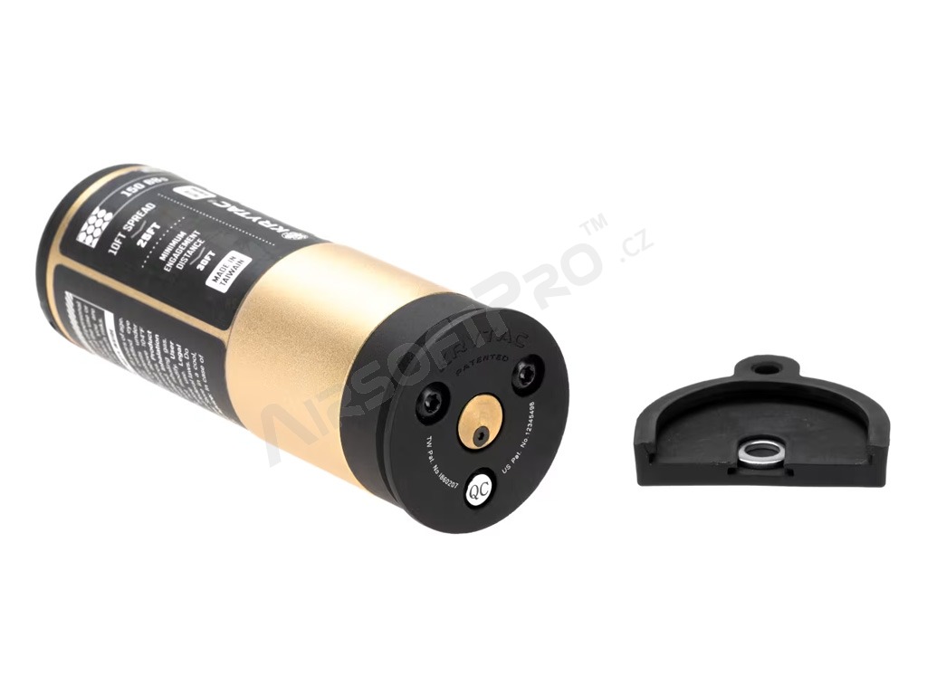 A termék kiváló minőségű polimerekből és megmunkált fém alkatrészekből készült, ami garantálja a hosszú és megbízható működést. A gránát egyedi fojtórendszerrel rendelkezik, amely testreszabható szórást biztosít - keskeny kúp a szűk helyekre és széles kúp a nyílt térben való játékhoz.