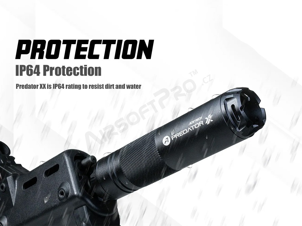 A Predator XX legérdekesebb tulajdonsága azonban a torkolattűz szimulációja, amikor többszínű lánghatással lövöldöznek. A lánghatás a torkolatot körülvevő gáz vagy köd térfogatától függ, minél nagyobb a térfogat, annál nagyobb a hatás. A hangtompító végén 3 LED található, amelyek megvilágítják a távozó lövedéket és a cső körüli gázt, amikor lövés történik. A kisülés gázpisztolyoknál a legjobban akkor látható, amikor a lövés után visszamaradó gáz világít. A hatás akkor is látható, ha elektromos fegyvereken használják, bár kissé halványabban. A Predator XX-ben a lövésimitáció színét és módját is kiválaszthatja. 2 megvilágítási mód és összesen 11 lángutánzó variáció áll rendelkezésre - az egyes színektől kezdve az RGB, Rainbow és Dynamic Rainbow üzemmódokon keresztül.