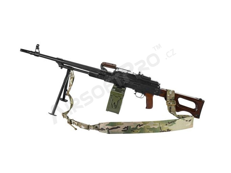 Ez a tartós és széles taktikai heveder Multicam álcázásban kifejezetten a nehezebb replikák, például a PKM géppisztoly vagy hasonló modellek használatára készült. Biztosítja a fegyver kényelmes hordozását hosszabb játékok vagy mozgások során, miközben lehetővé teszi a gyors kezelést akció közben.