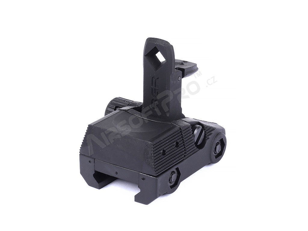 Az irányzék oldalirányban állítható, kétféle irányzékméret közül választhat a precíziós lövészethez vagy a gyors, közeli célzáshoz. Tartós polimerből készült. A RIS rögzítés lehetővé teszi a könnyű felszerelést bármilyen RIS sínre. Olyan reteszelő mechanizmussal rendelkezik, amely mindkét pozícióban szilárdan tartja.