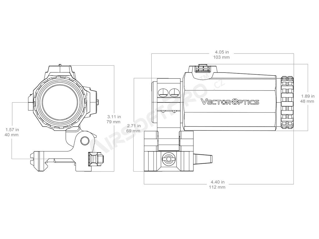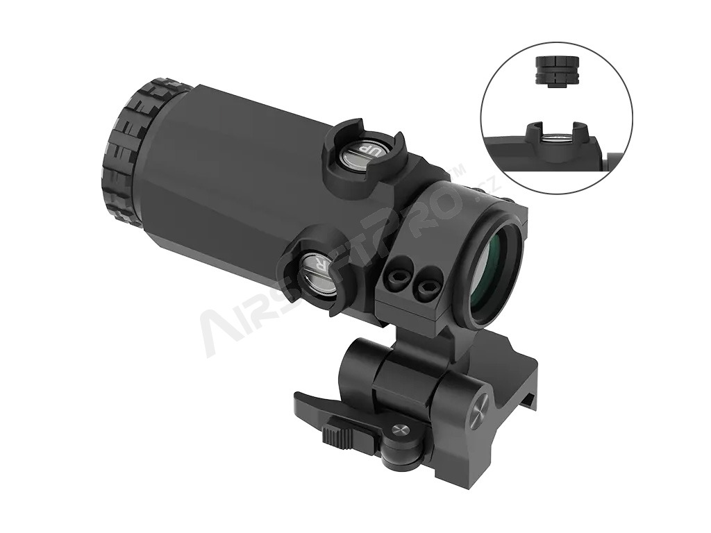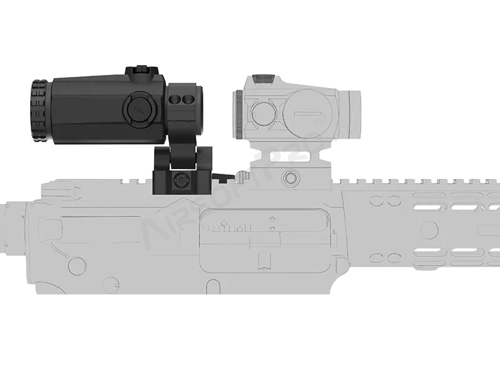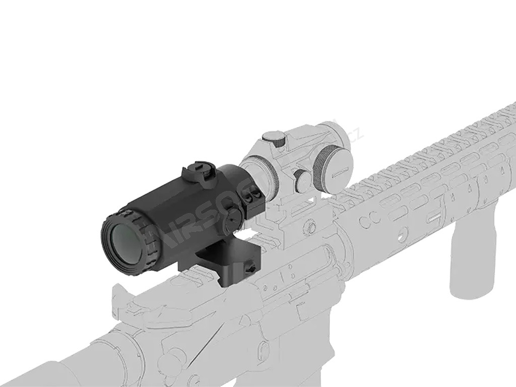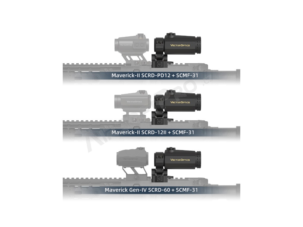 A Vector Optics Maverick Gen III MIL 3x22 egy 3x-os nagyítású optika, amely a kollimátor előtt (a kollimátor és a lövész között) helyezkedik el. Nagyobb távolságokra a kollimátoron keresztül történő célzáskor ráközelít a célpontra. Rövidebb távolságokra történő lövéskor egyszerűen oldalra dönthető, és csak a kollimátoron keresztül célozhat tovább.