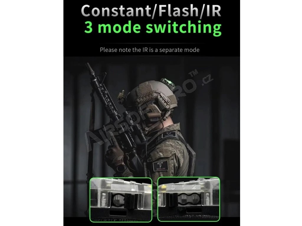 F101 Stealth Tactical jelzőlámpa sisakra (zöld/fehér/IR) - Coyote Brown [EARMOR]