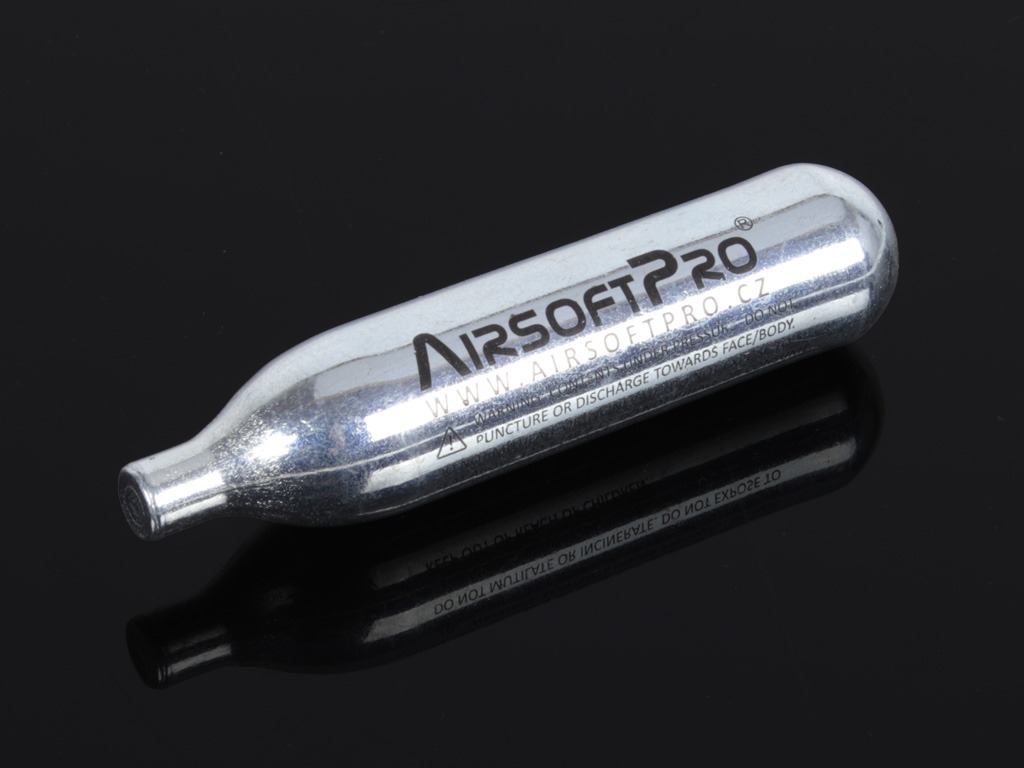 Eldobható 12 grammos AirsoftProCO2 patron, amelyet az airsoft és légfegyverekmegbízható meghajtására terveztekCO2-n.