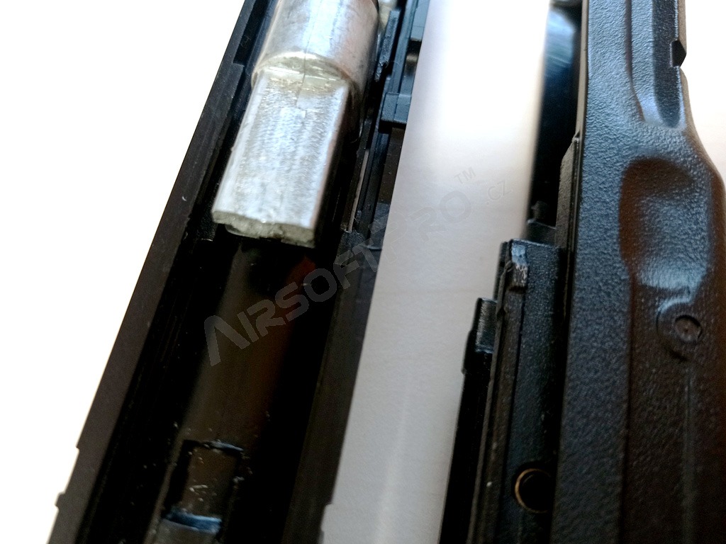 Ennek a modellnek az az érdekessége, hogy az utolsó töltény kilövése és a következő alkalommal történő felhúzás után a csúszka a hátsó pozícióban marad felhúzva. A pisztoly bal oldalán lévő kar megnyomásával a csúszka visszaállítható eredeti helyzetébe. Mint a sokkal drágább gázpisztolyoknál, amikor az utolsó töltényt kilövik a tárból. Tehát ki kell venni a tárat és újratölteni a töltényeket.