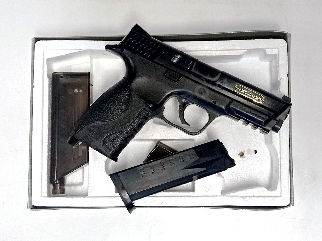 M40 kézi pisztoly a tajvani KWC cégtől. Megbízható kézi pisztoly, amely tartós ABS műanyagból készült. Kezdők számára alkalmas.