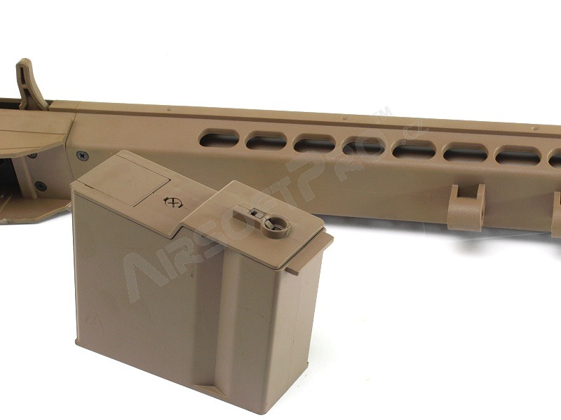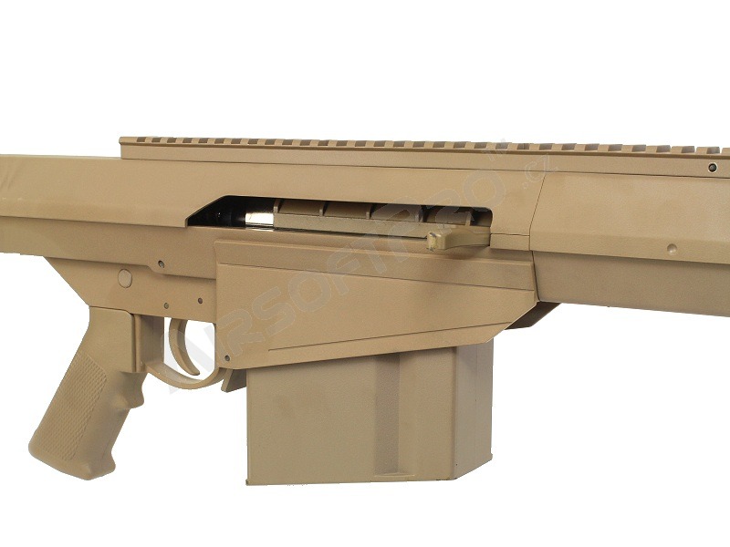 A kínált airsoft változat a híres M82 A1 Barrett mesterlövészpuska megfizethető másolata. Ez egy kézi változat, ahol a csúszókart előre-hátra húzva kinyúlik a légdugattyú. A belső felépítés szinte teljesen megegyezik a népszerű SVD Dragunov puskával, ezért nem csak az elektromos fegyverek rugóit, hanem a megerősítő dugattyúkat, dugattyúmegállókat..stb. is használni kell. Valószínűleg egy CO2 készlet is használható, azonban ezt nem teszteltük.