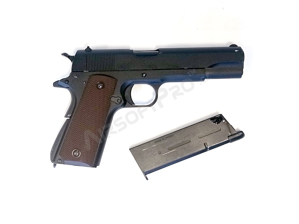 Airsoft pisztoly 1911 A1, teljes fém, gáz visszahúzós - fekete - VISSZAÉRKEZETT [KJ Works]