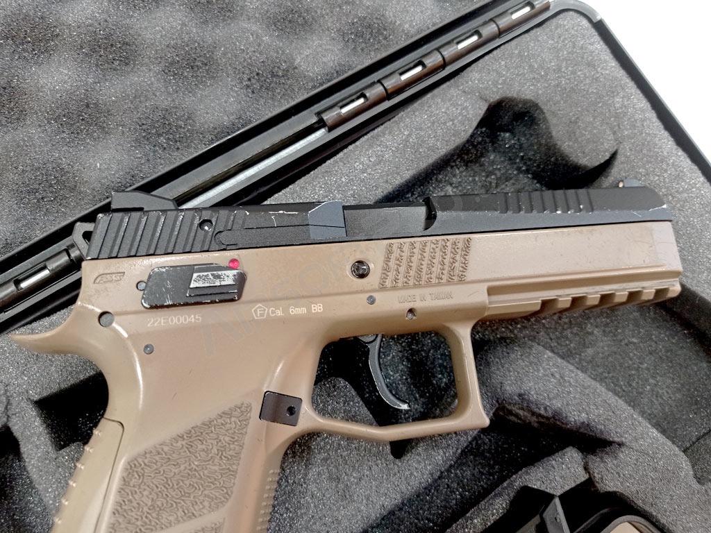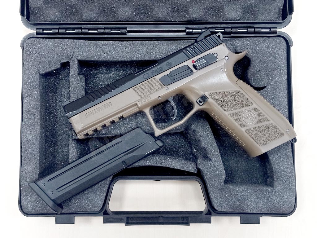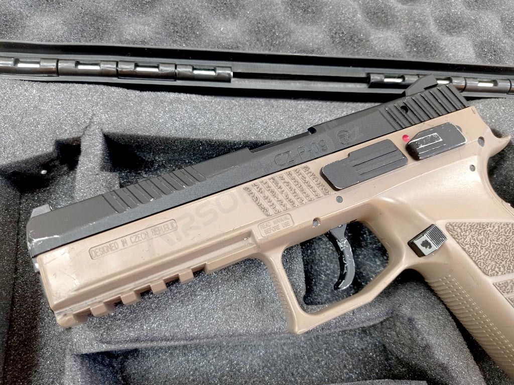 Airsoft pisztoly CZ P-09 DT FDE, fém csúszka, gáz visszahúzás + tok - MEGBÍZHATÓ