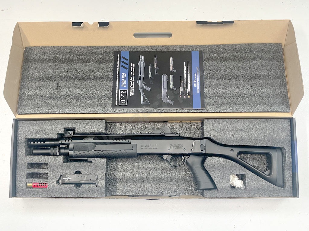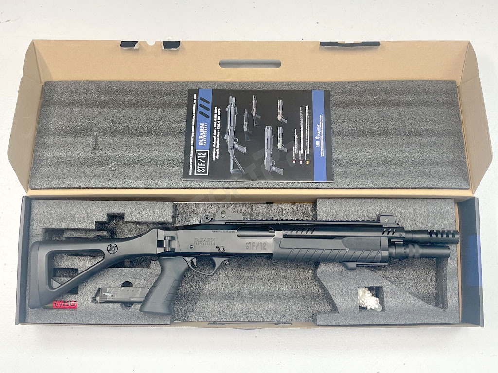 Az STF 12 egy 1:1 méretarányúgázos airsoft puska, amelyet a FABARMS engedélyezett. A modern rálátás az, ami első pillantásra megragadja a szemet és megkülönbözteti a többi sörétes puskától. A GreenGas meghajtásnak köszönhetően a kakasfelhúzás nagyon egyszerű (nem kell leküzdeni a rugóerőt, mint a kézi változatnál), és a fegyver kezelése nagyon közel áll a valós elődjéhez.