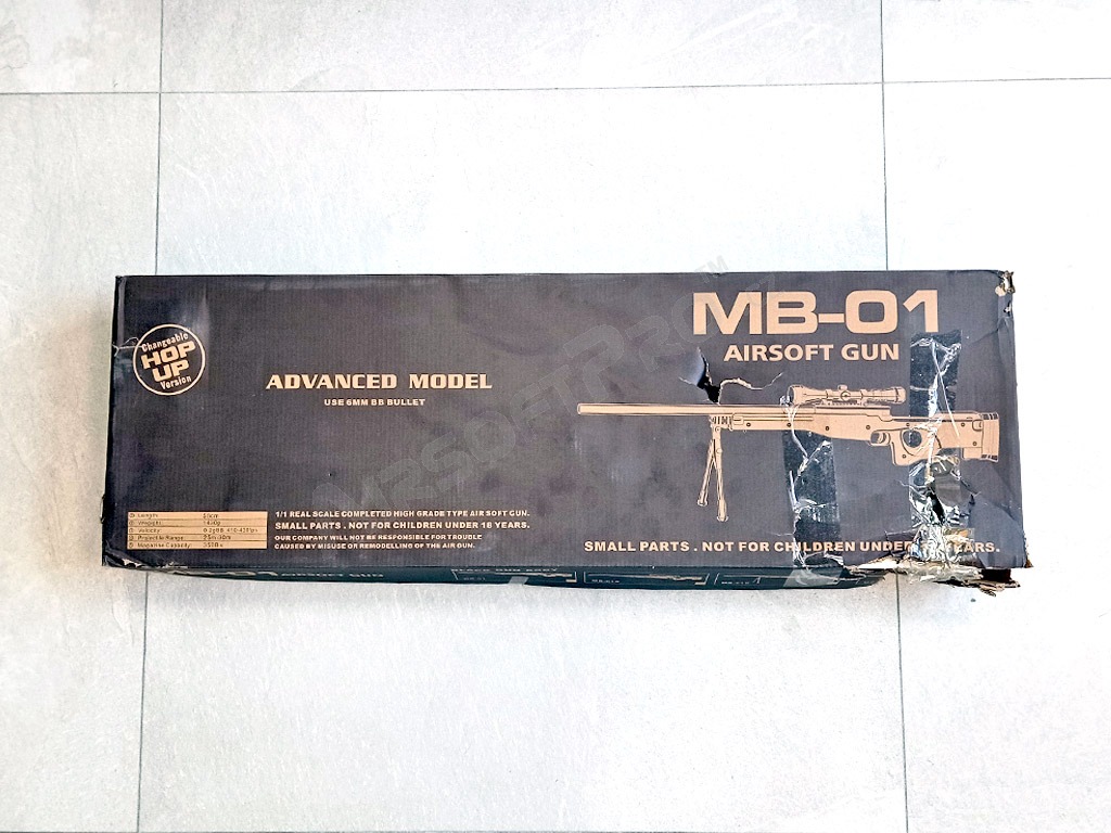 Nagyon erős kézi mesterlövész puska Well MB01C. Ez egy Upgrade változat, amelyet közvetlenül a Well gyártója módosított. Tartalmazza az alumínium rugótüskét, az alumínium dugattyút 90°-os reteszeléssel (amely természetesen a kioldó mechanizmussal is rendelkezik) és a kb M155-ös rugót. Ezek az alkatrészek sokkal tartósabbak, mint az alap műanyag alkatrészek és növelik a fegyver teljesítményét. Ez körülbelül 155-165 m/s (akár 540 FPS).