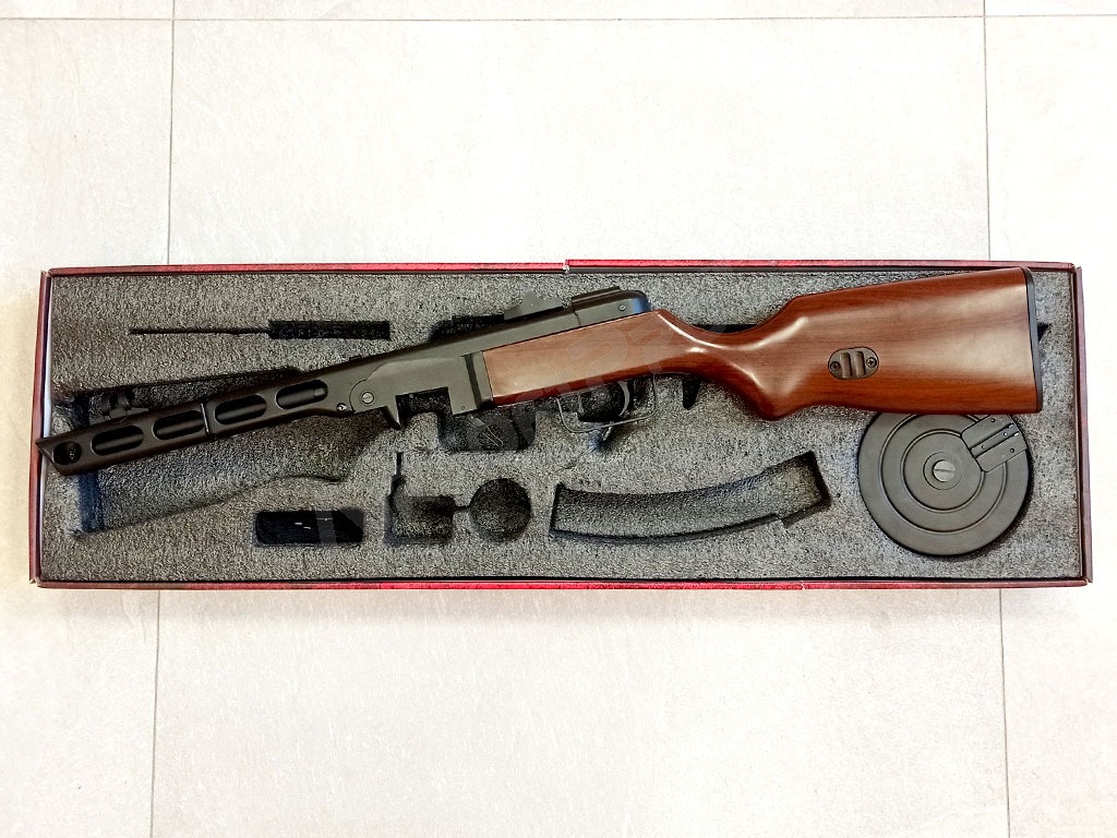 Ezt a klasszikust a második világháborús fegyverek között nem kell hosszasan bemutatni. A PPSh, vagy "Spagin" a Vörös Hadseregre jellemző fegyver volt. Ez a replika a valódi modellje alapján készült. A fegyver acélból és műanyag fa utánzatból készült. Elektromos blowbackkel is rendelkezik, amely tüzeléskor nemcsak a zárszerkezet felhúzókarját, hanem a zárszerkezet kioldó ablakát is mozgatja.