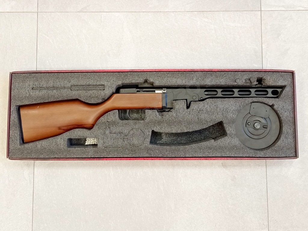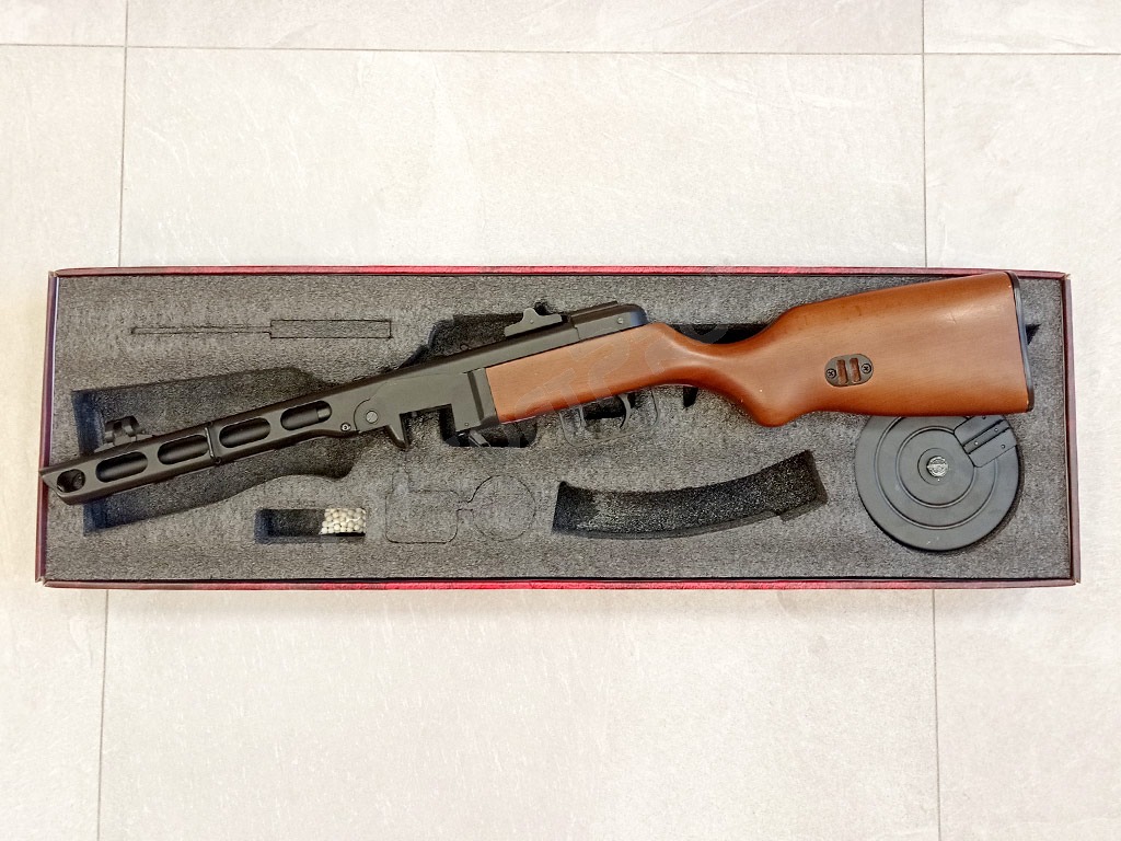 A második világháborús fegyverek eme klasszikusát nem kell hosszasan bemutatni. A PPSh vagy "Spagin" a Vörös Hadseregre jellemző fegyver volt. Ez a replika a valódi modelljének megfelelően teljes egészében fémből és valódi fából készült. Elektromos blowbackkel is rendelkezik, amely tüzeléskor nem csak a zárszerkezet kelepelő karját, hanem a zárszerkezet kilövőablakát is mozgatja. A fegyver igazán jól megmunkált fával és valósághűen bélyegzett testtel rendelkezik.