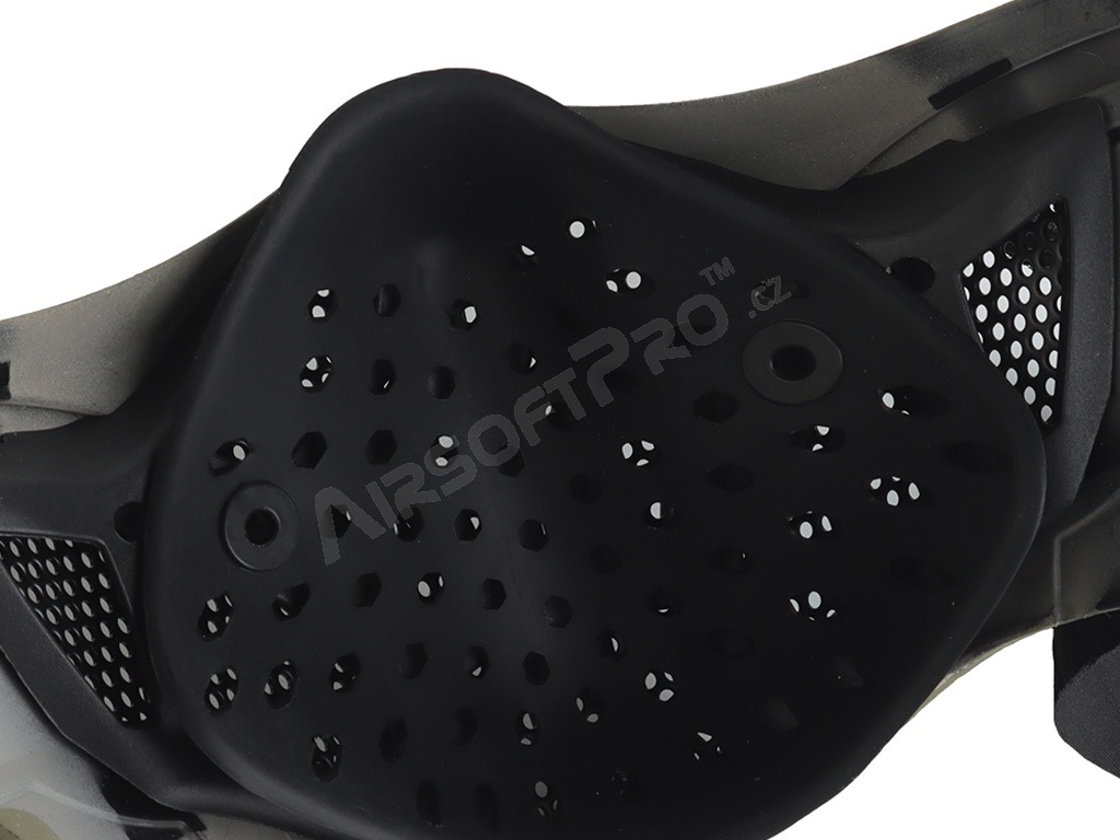 A maszk nagy szellőzőnyílásokkal rendelkezik, hogy viselés közben könnyedén lélegezhessen, miközben védelmet nyújt az arcnak a beérkező BB-k ellen. A maszk belső része kiváló minőségű szilikonból készült, amely kellemes tapintású és kényelmes viselet.