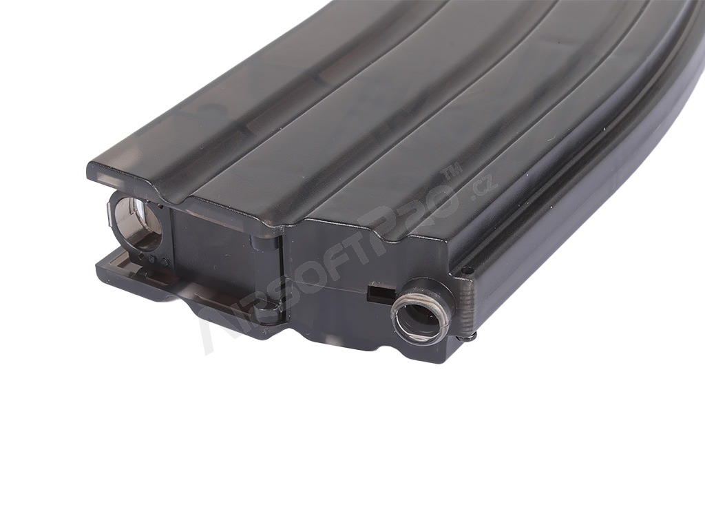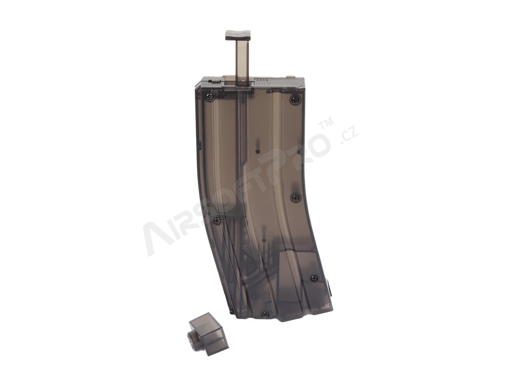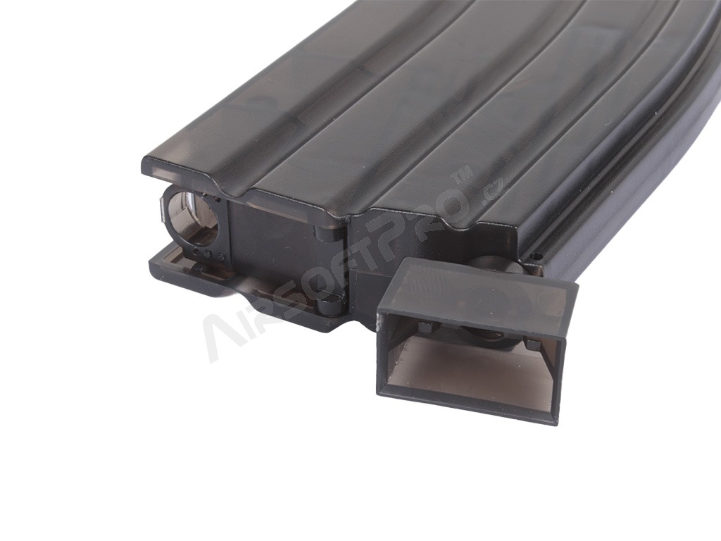 A töltő ABS műanyagból készült, kapacitása 470 golyó. Az utántöltő a tár szájához van rögzítve, és a mozgatható kar megnyomásával a golyók ismételt lökésekben kerülnek a tárba. Ez a leggyorsabb és legegyszerűbb módja a tolókazetták feltöltésének. A gázpisztoly tárakhoz való adapter a tartozék.