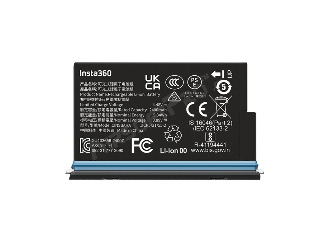 2400 mAh kapacitású csereakkumulátor az Insta360 X5 kamerához. Az akkumulátort kifejezetten az Insta360 X5 kamerához tervezték. Hosszabb élettartamot és megbízható teljesítményt biztosít a nagy felbontású felvételek készítéséhez.